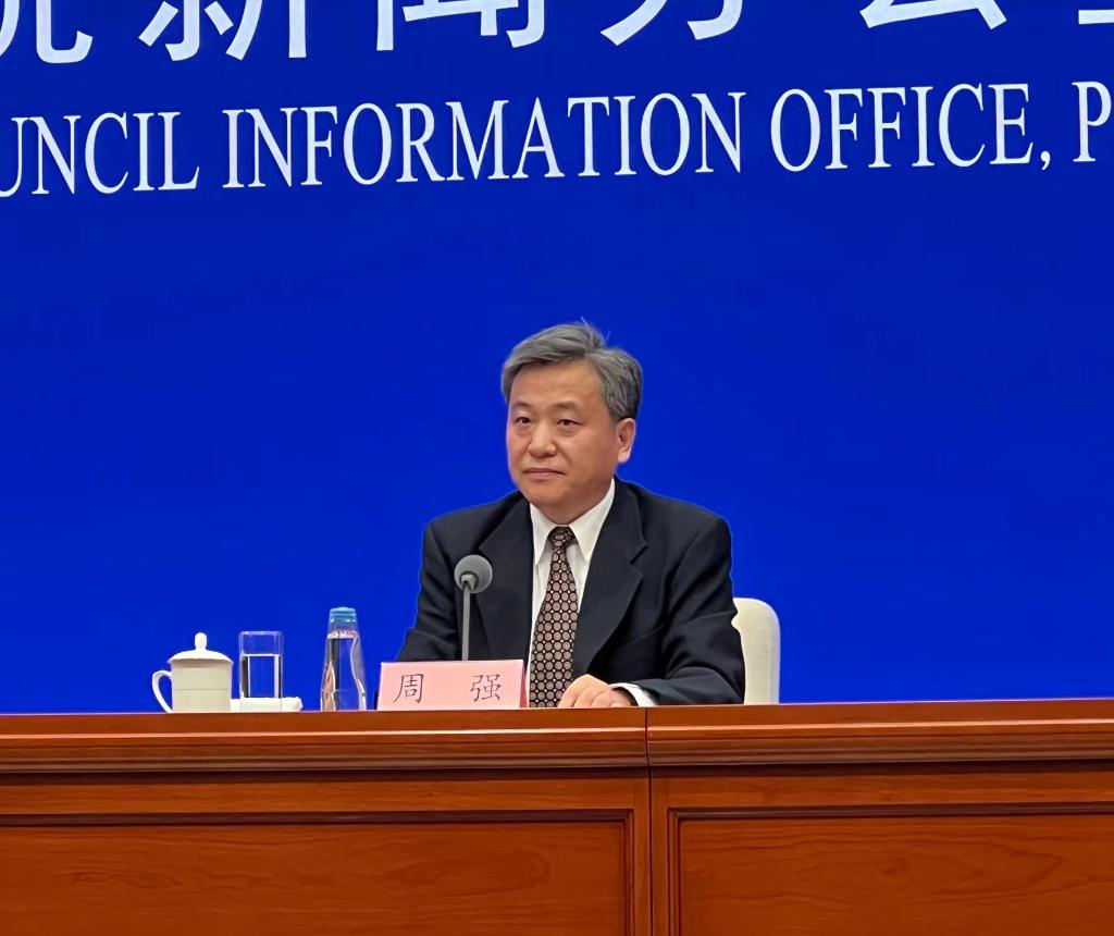 6月5日,國務院新聞辦公室在北京舉行國務院政策例行吹風會,商務部市場體系建設司司長周強介紹建設全國統一大市場有關情況。 新華社記者 韓佳諾 攝