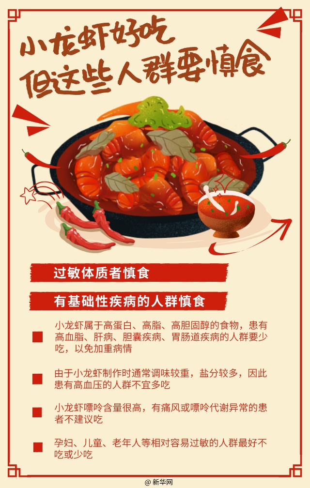 所以,食用小龍蝦時一定要留神,尤其對于過敏體質的人群,要格外當心。