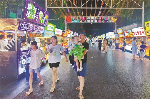 7月10日晚,長沙市芙蓉區揚帆夜市,眾多市民游客在此“逛吃”。