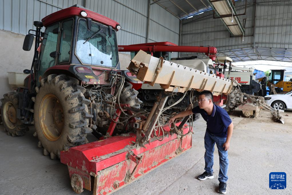 王濤在查看自己的農機。新華社記者程濟安 攝