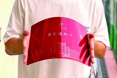 2023版錄取通知書,不但繼續采用3D手工制作,而且材質更薄更堅挺,厚度差不多和3張普通A4紙相當,可任意對折、側壓,甚至可以像紙張一樣卷曲成軸。