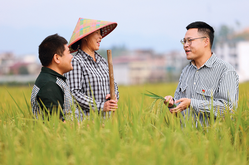 湖南省邵陽市洞口縣組織干部走進田間地頭,聽民聲、紓民困,走好晚稻抗旱保收“最后一公里”(2022年10月攝)  劉金漢攝