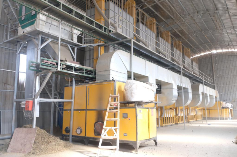 湖南省岳陽市汨羅市桃林寺鎮的晚稻烘干作業現場。(鄭波 攝)