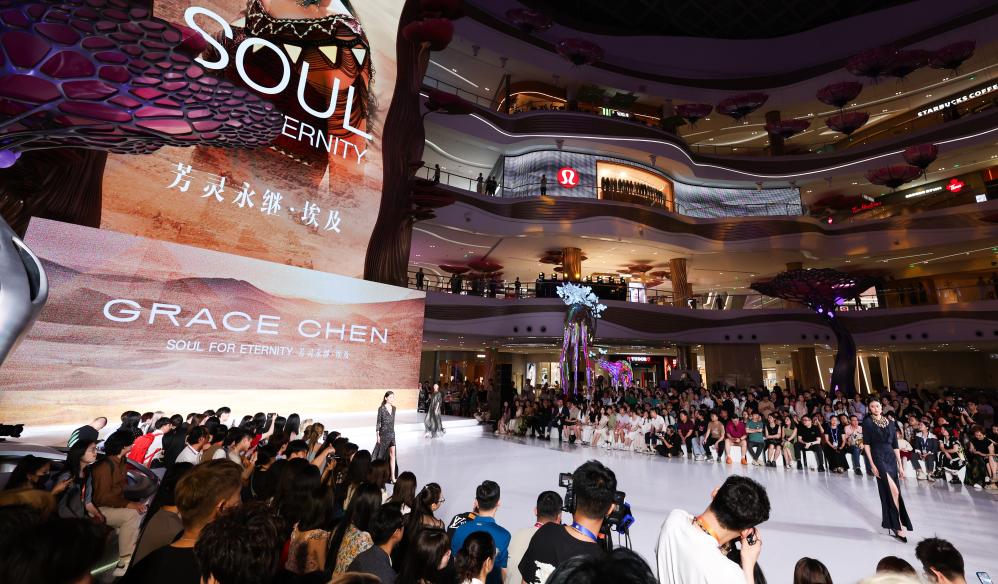 4月13日,在??趪H免稅城消博會時裝周主秀場,模特在展示時裝作品。新華社記者楊冠宇 攝