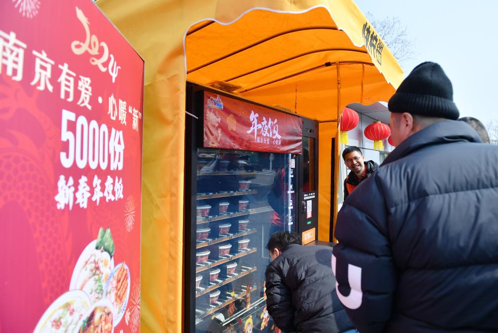 2024年2月9日,南京市交通運輸局面向網約車司機、快遞員等新業態勞動者開展“年夜飯”贈送活動。 新華社記者 柳文惠 攝