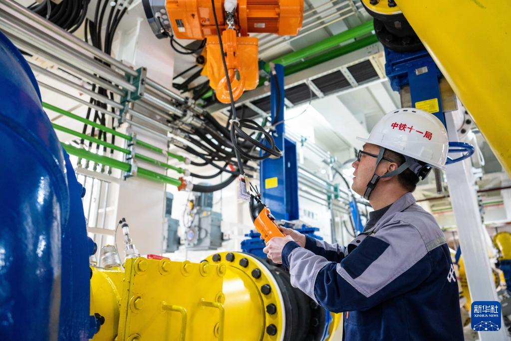 2024年1月10日,在鐵建重工長沙第一產業園,工人在調試“定海號”超大直徑盾構機。新華社記者 陳思汗 攝