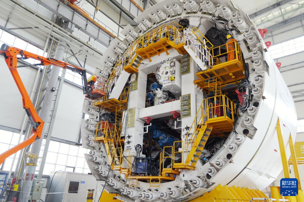 這是1月10日在鐵建重工長沙第一產業園拍攝的“定海號”超大直徑盾構機。新華社記者陳思汗 攝