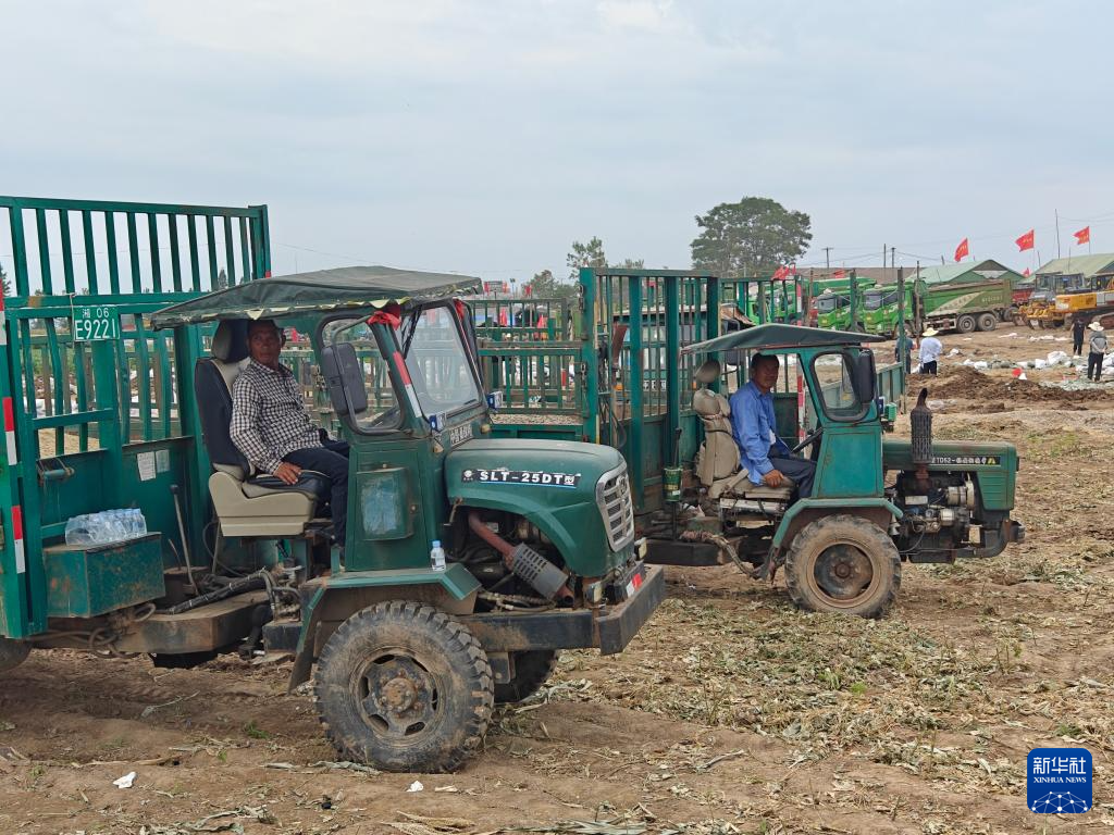 蔡海軍的拖拉機正在卸載搶險物資。新華社記者周勉 攝
