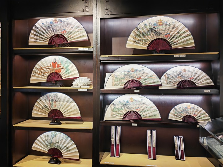 炎炎夏日,在岳陽樓景區不時能看到拿岳州書畫絹扇的游客。斑竹為骨,絲絹為面,一面是《洞庭秋晚圖》的畫意,一面有《岳陽樓記》的墨香?!吧茸硬槐阋?,最小的也要200多元,但拿在手上賞心悅目,就買了一把留作紀念?!币晃挥慰蛯τ浾哒f。