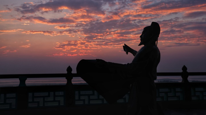 這首五言絕句大氣磅礴,代表了昂揚奮發的盛唐氣象,短短20個字把鸛雀樓寫進了天下人的心中。如今,在鸛雀樓第六層有一尊王之渙的銅像,迎風潑墨,意氣風發。常常有中外游客在他的銅像旁吟誦《登鸛雀樓》。