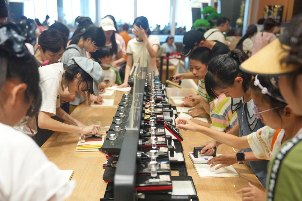 游客在湖南博物院博物館公園體驗文創產品。新華社記者 薛宇舸 攝