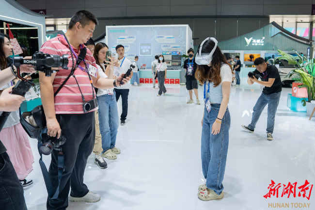 湖南館以“湖湘文脈 科創未來”為主題,設立主形象區、“科文融合”綜合展區、音視頻產業專題展區,以湖湘文脈傳承為核心,湖南廣電集團、湖南出版集團、湖南省博物院、馬欄山音視頻實驗室、知了青年、泛聯新安、萬興科技、空間蛙普等單位或領軍文化企業攜音視頻產品、音視頻裝備、數字文博、數智出版、智慧文旅、動漫游戲等代表性成果亮相。