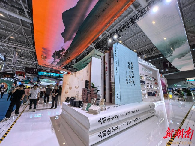 湖南出版集團展示“湖湘文脈”系列集成性圖書。