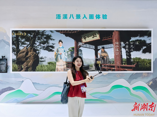 通過選裝、掃臉、選景、入畫幾個簡單的步驟,游客就能進入浯溪八景(寶篆文光、浯溪漱玉、吾亭六厭、摩崖三絕、笑峴亭嵐、峿巖窺湘、峿臺晴旭、窊尊夜月),與黃庭堅、元結等詩詞大家同框。
