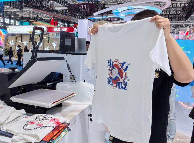 通過山海APP的二創功能,能將從文物上提取出來的紋樣和圖案打印在T恤上并帶走。