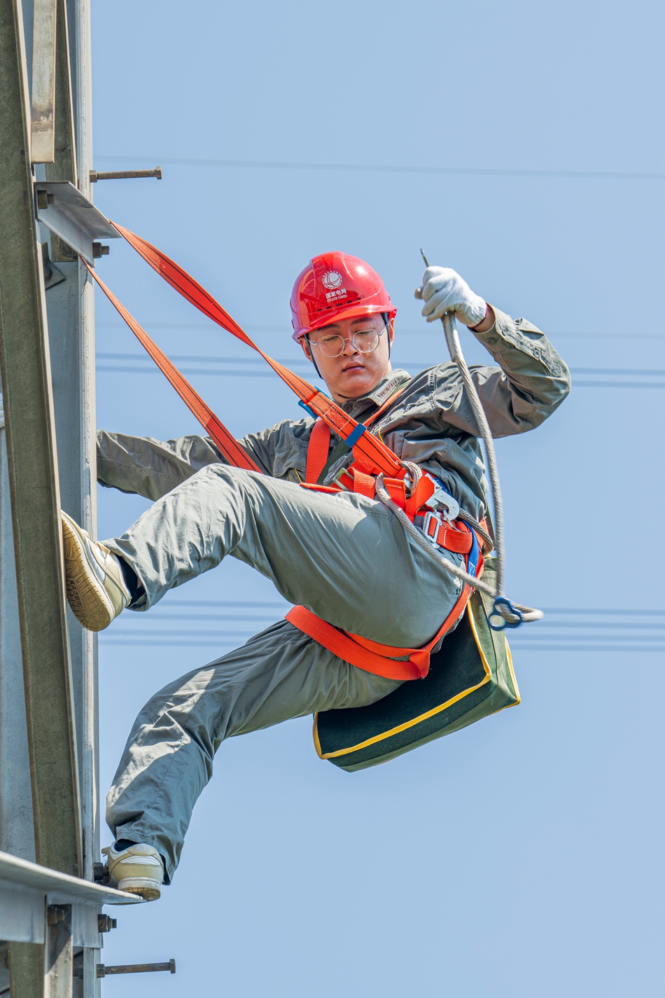 7月5日上午9:20,長沙電力輸電檢修公司工作人員在220千伏星解線開展桿塔螺栓檢查和緊固工作。石磊 攝pagebreak