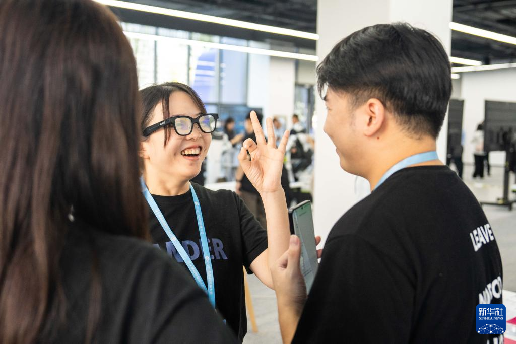 9月15日,在湖南湘江新區長沙智谷,觀眾(中)在體驗一款智能眼鏡。新華社記者 陳思汗 攝