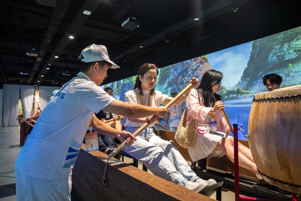 在五溪非遺園,游客在體驗數字賽龍舟。新華社記者 陳思汗 攝