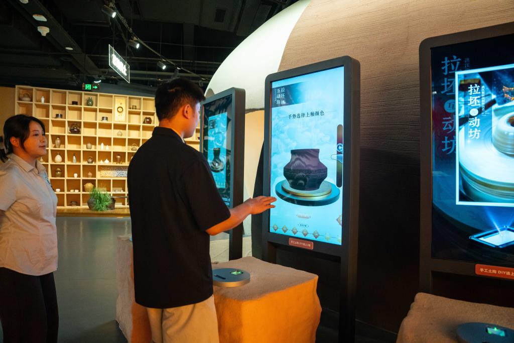 在五溪非遺園,游客在體驗數字化土陶制作。新華社記者 陳思汗 攝