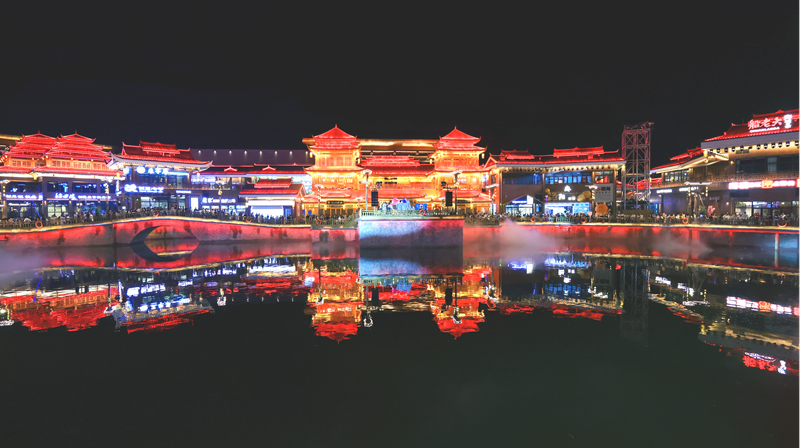 9月17日夜幕降臨,湖南省第五屆旅游發展大會重點觀摩項目之一的榆樹灣文旅商綜合體街面人頭攢動。在一排排極具特色的建筑群里,“黃金樓”在燈光映照下通體金燦,引無數游人駐足參觀,成為該地頭號打卡點。