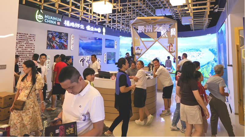 “我們展館既有文旅項目介紹,又有沅陵碣灘茶、沅陵醬酒、曬蘭等特產和辰州剪紙等非遺展示?!便淞瓿桨l文旅工作人員陳小菊介紹。