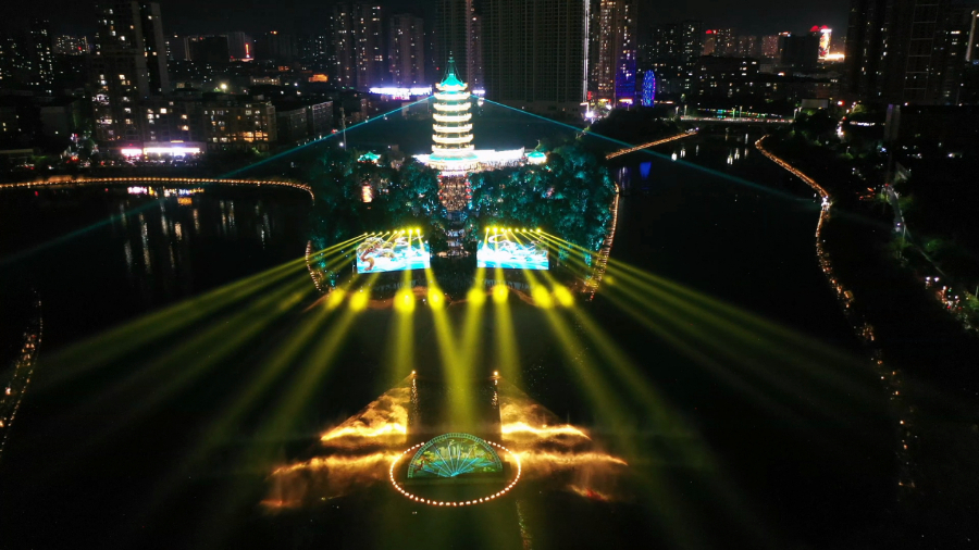 國慶中秋假期,懷化市鶴城區太平溪畔的鶴鳴洲景區,夜幕降臨便化身璀璨的光影海洋,以“一河兩岸?鶴鳴福洲”為主題的夜游盛宴啟幕,噴泉、升降LED屏與燈光交織聯動的沉浸式演出,讓這座城市的夜晚充滿活力與魅力。