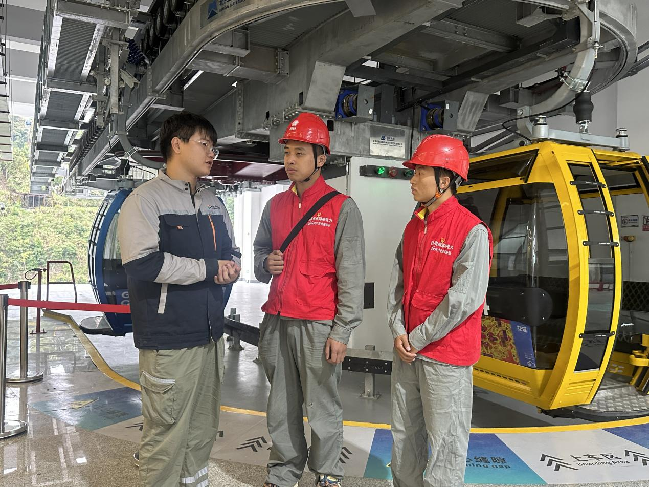 該公司組織國網湖南電力(懷化)東方紅共產黨員服務隊開展專項保障,對供電線路及設備實施全面巡視維護,確保電力設施始終處于最佳運行狀態。同步應用數字化監控技術,通過遠程系統對索道核心設備進行24小時實時管控,顯著提升供電可靠性及應急響應能力。