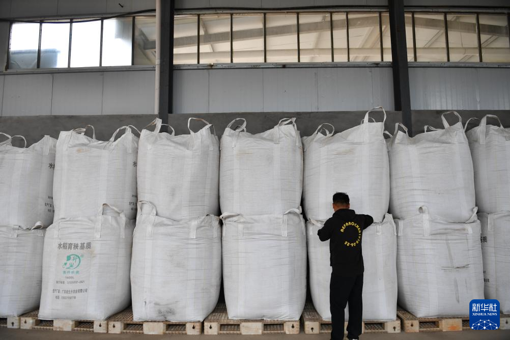 10月30日,邱彬將烘干后的稻谷裝袋。新華社記者 陳振海 攝pagebreak