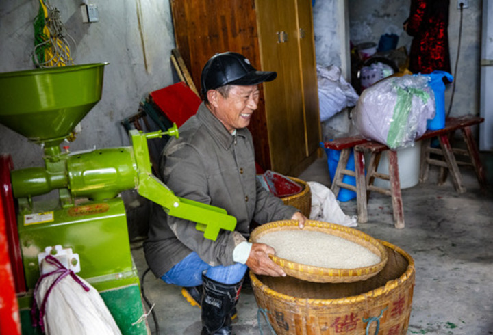 老伴也拗不過他。如今家里種著三畝五分田,比起高峰時的十多畝,他覺得輕松了不少。提到田里的事,“米王”站起身:“走,去田里看看!”