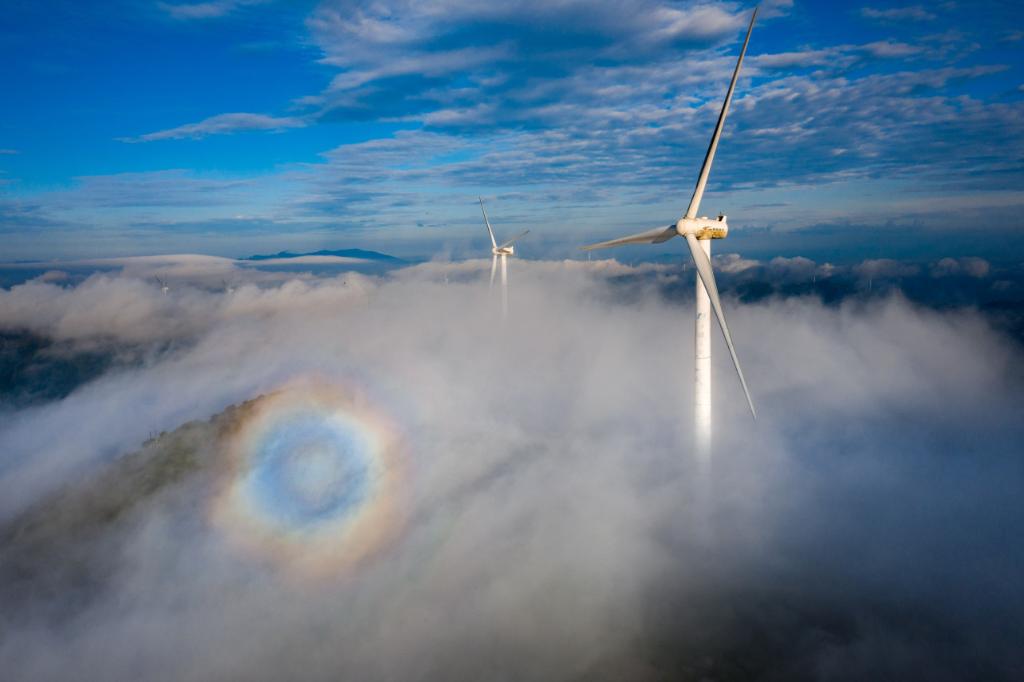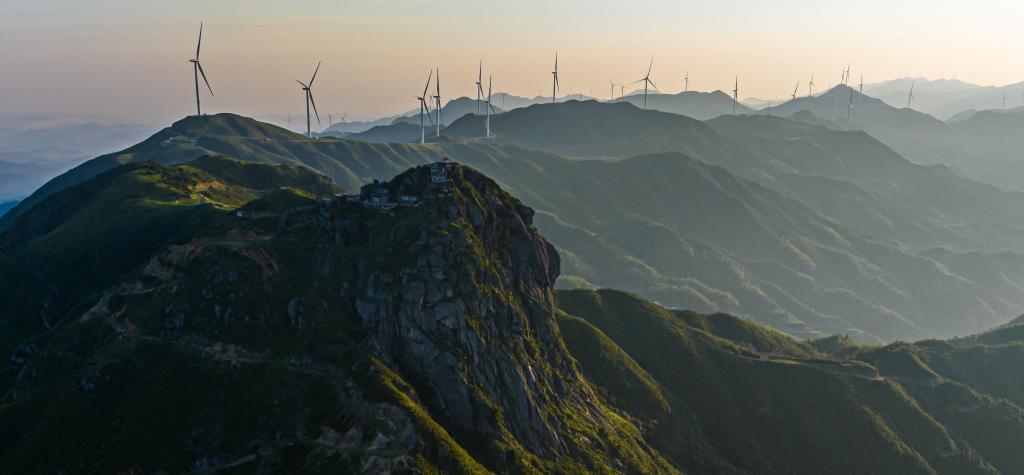華電新能湖南分公司仰天湖風電場。秋色浸染,風車點綴在五彩斑斕的山野之間。(華電新能湖南分公司 供圖)pagebreak