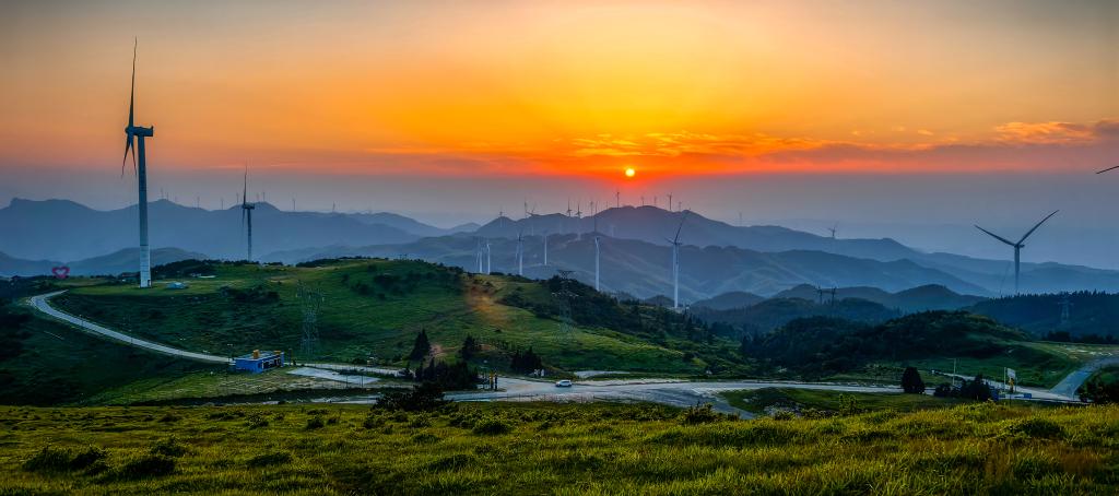 新華社客戶端長沙10月31日電(蔣若蕾)在海拔1300余米的仰天湖大草原上,華電郴州仰天湖風電場的一臺臺白色風機如秋日琴弦,隨風奏響清潔能源的樂章。風機轉動間,科技與自然悄然“對話”,為游客編織出一幅“追風逐電”的浪漫圖景。